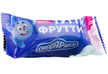 Молочно-желейная конфета Смешарики с глазированным донышком в форме зайчика, не останется не замеченной в нашем сладком новогоднем подарке. Конфетки с молочно-кремовой начинкой и популярным вкусом Тутти-фрутти в индивидуальной упаковке флоупак.
